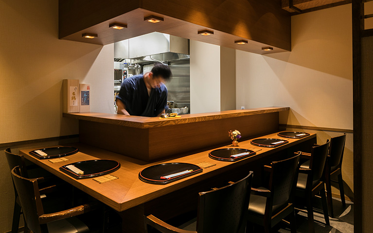 目の前で創られるお料理をカウンター越しにお楽しみいただけます。接待・カップル・お一人様にもオススメです♪